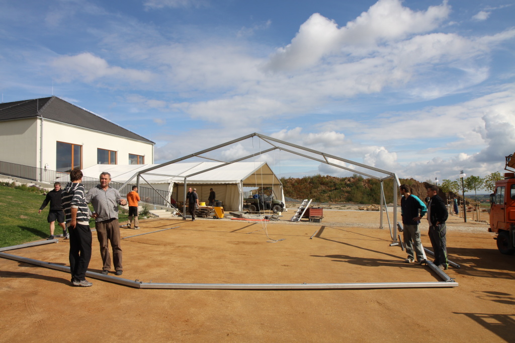 Tenisový kurt v době výstavby